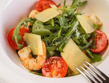 Салат руккола с креветками и авокадо готов. Приятного аппетита!
