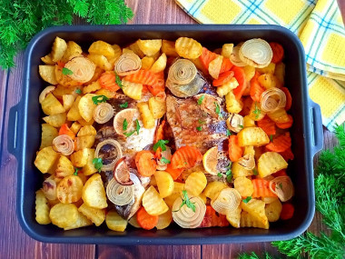 Прекрасное блюдо получилось! Вкусно, ароматно, питательно! Овощи подрумянились, а рыбка удивительно нежная!