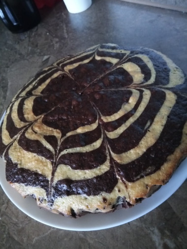 Форму для запекания смажьте сливочным маслом. Добавляйте в центр формы по одной ложке теста. Сначала коричневое, потом белое.