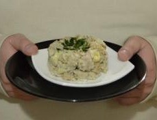 Также в качестве заправки можно использовать не только майонез, но и сметану или натуральный йогурт. Их можно взять по отдельности либо смешать с майонезом в любой пропорции на свой вкус - это снизит калорийность блюда.