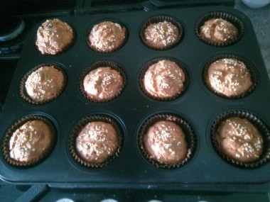Выпекаем маффины при 180 град. 30-35 минут до румяности. Готовность проверяем деревянной шпажкой.
