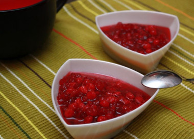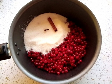 Брусничное варенье имеет необыкновенный вкус, поэтому его можно употреблять практически с любой едой. Варенье, приготовленное по такому кулинарному рецепту, получается не очень сладким, но с насыщенным вкусом и ароматом. Кроме традиционного применения с чаем, блинами, мороженым или в выпечке, его можно подавать к жареному мясу или птице, а также к жареному сыру. И, несомненно, брусничное варенье заготавливают на зиму. Свежую бруснику перебираем, промываем, заливаем кипятком и откидываем на дуршлаг. Кладем бруснику в кастрюльку, подливаем воду и засыпаем сахарным песком. Кастрюлю с ягодами ставим на небольшой огонь. В процессе варки варенье аккуратно перемешиваем, добавляем палочку корицы и бутончики гвоздики. После того как варенье закипит, варим его на медленном огне в течение 5 минут. Затем выключаем огонь и ставим варенье охлаждаться при комнатной температуре. Остывшее варенье раскладываем по банкам и плотно закрываем крышками. Очень вкусное брусничное варенье, на приготовление которого вы затратите всего полчаса!