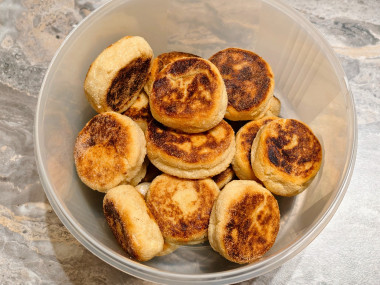 За основу взяла данный рецепт Пышные сырники с манкой на сковороде !) исключила совсем сахар и не обваливала в муке ) плюс пожарила на гриле без капли масла ))) получились оооочень вкусные и пышные))) а смазать можно и сгущенкой для сладости или мёдом !)