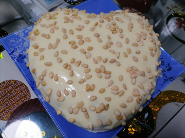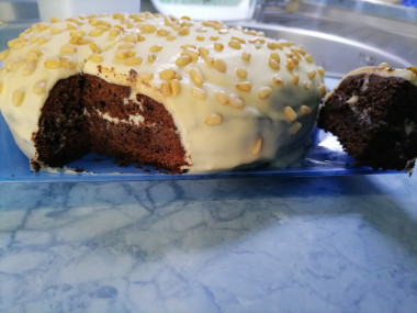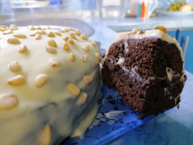 Собираем пирог! Готовой глазурью промажем нижнюю часть пирога, накрываем второй частью и оставшейся кофейной пропиткой промазываем вверх и бока пирога. Сверху выливаем остаток глазури и распределяем ложкой по всему пирогу. Отправляем в холодильник на 1-2 часа, чтобы глазурь полностью застыла. Готовый пирог нарезаем и подаём к столу. Он получается потрясающе вкусным и с лёгким ароматом кофе. Кушать этот пирог одно удовольствие, да и го