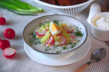 Не помню ни одного лета без окрошки. Вот и сейчас уже хочется лета, поэтому приготовила классическую окрошку с колбасой, правда без редиски. Очень вкусно!