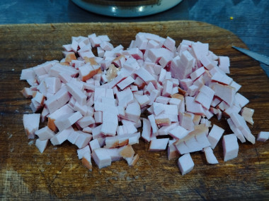 Вместо колбаски часто добавляю довольно мелко порезанное отварное куриное мясо.