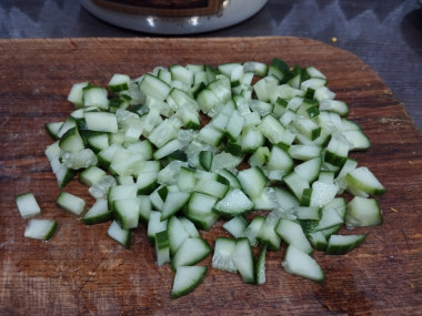 Отваренный картофель остудите. Не используйте его в теплом виде, он испортит вкус холодного супа. Очистите картофель от кожуры. Мелко нарежьте картофель на кубики.