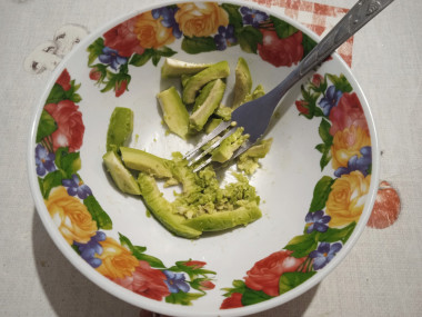 Мякоть спелого авокадо разминается очень легко и быстро - достаточно буквально несколько секунд.