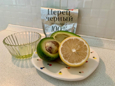 Калорийность продуктов: Авокадо, Лимонный сок, Оливковое масло, Морская соль, Перец черный молотый