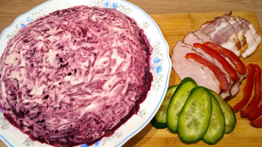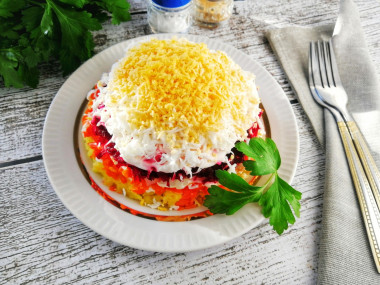 Интересный вариант овощного салата, буду готовить. Не могу не поделиться рецептом классического салата шуба под майонезом с селедкой.