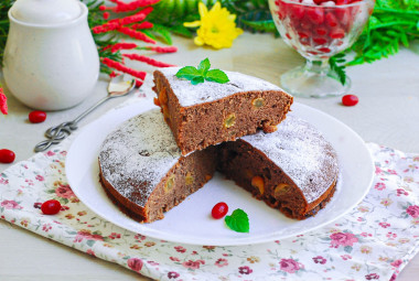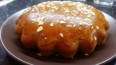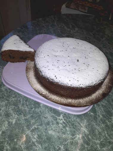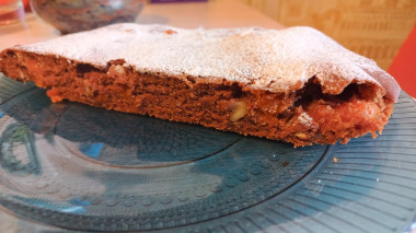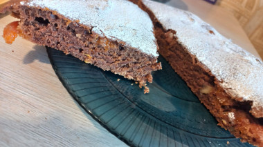 Вместо изюма добавила курагу (что было) и горсть грецких орехов. И ( о, ужас) у меня из специй осталась только корица, а разрыхлителя не оказалось совсем, пришлось заменить на соду ( 1 ч.л.)