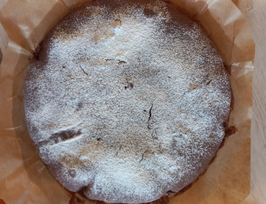 Итог: пирог полностью пропекся, но прилип к пергаменту, пришлось аккуратно отделять ножом.