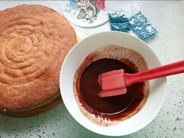 Торт предназначался для взрослых, поэтому в пропитку добавила ром. Пропитала коржи хорошо до заметного увлажнения.