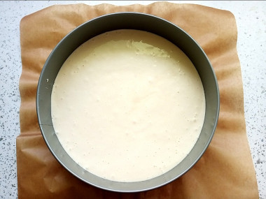 Выложите тесто в застеленную пергаментом форму для выпечки (Ø 22-24 см) и разровняйте. Поставьте форму в разогретую до 180°С духовку на 35-45 минут. Точное время выпекания зависит от особенностей вашей техники и толщины бисквита Подробнее о том как правильно подобрать время и температуру выпекания читайте в статье. Ссылка находится в конце рецепта.