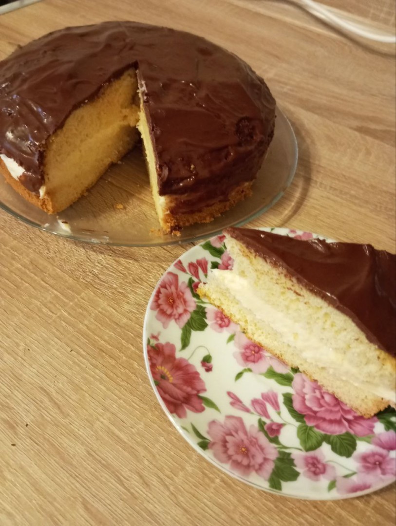 Торт классный! На деле даже лучше покупного. Недавно делал шоколадную версию данного торта. Корж сделал кофейный, а крем заварной шоколадный. Для пропитки коржей использовал варёную сгущёнку взбитую с молоком. Весьма неплохая версия получилась)