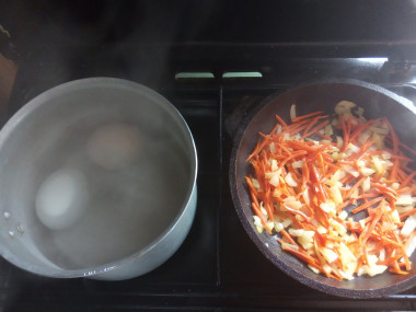 На сковороде разогрейте растительное масло. О том, как правильно выбрать масло, читайте в отдельной статье, ссылка в конце рецепта. Выложите на сковороду подготовленные морковь и лук и спассеруйте их. Сильно зажаривать морковь и лук не нужно, чтобы не испортить вкус супа.