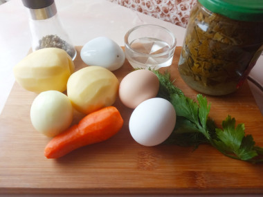 Яйца отварите вкрутую, остудите в холодной воде и очистите от скорлупы. О том, как правильно варить яйца, читайте в отдельной статье по ссылке в конце рецепта.