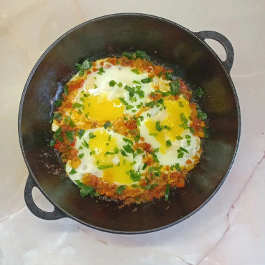 Первый день весны - хочется чем-нибудь ярким и вкусным открыть этот день! Ну что ж, сказано - сделано. И вот уже горячая, вкусная и очень ароматная шакшука подзывает всех за стол к завтраку. Мммммм - это просто объедение, и, конечно же, заряд отличного настроения на весь день! Благодарю автора за рецепт.