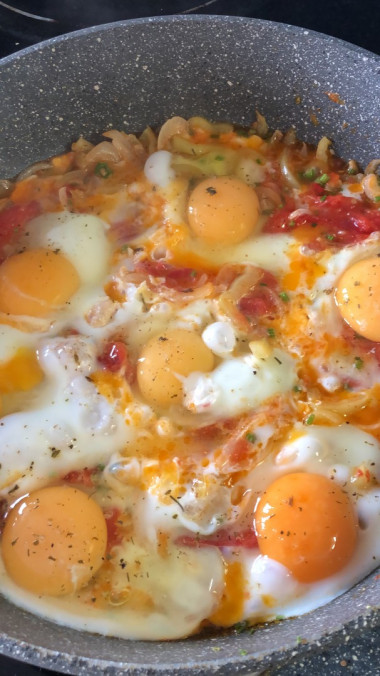 Отличный рецепт для завтрака. Очень вкусная, сытная, ароматная с легкой остринкой. Я еще добавляла острый перчик, ну просто пальчики оближешь!