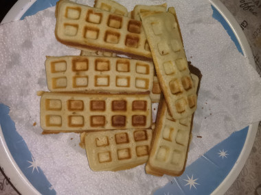 Спасибо большое! Впервые готовила не на советской вафельнице))) У меня ничего не прилипло! Это потому, что хорошо разогрела вафельницу! Я использовала достаточно хорошее масло и домашние яйца. Вафли получились чуть хрустящие внешне и очень мягкие внутри. По рецепту автора, мой выход составил +/- 18 вафель.