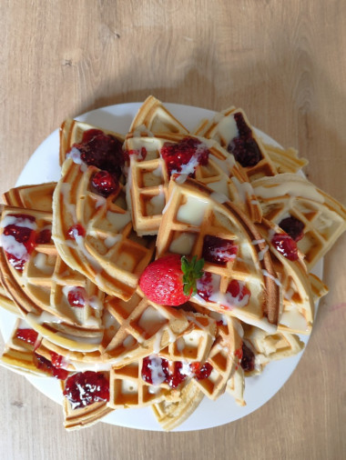 Что касается вкуса: да, бельгийские вафли по текстуре могут напоминать пышные блины, но их особенность — в слегка хрустящей корочке снаружи и воздушности внутри. Для более яркого вкуса можно добавить в тесто цедру апельсина, щепотку корицы или какао-порошок.