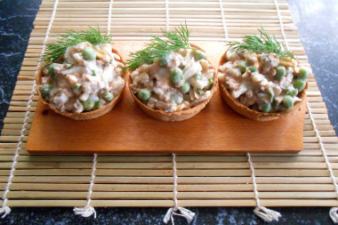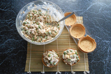 Решила приготовить закуску на праздничный стол по Вашему рецепту. Благодарю вас за подробное и чёткое описание каждого шага. Приготовила очень быстро салат с тунцом. Использовала консервированный измельченный тунец в масле, что тоже очень удобно, не нужно измельчать тунец) и заменила огурчики на зелёный горошек, так как не все мои любят маринованные огурчики, к сожалению. По вашим рекомендациям яйца я натерла на крупной тёрке. Салат получился великолепный! В тарталетки салат укладывала непосредственно перед подачей на стол, боялась, что песочные тарталетки могут размокнуть, пока ждут гостей.