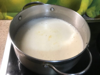 При постоянном помешивании доведите до кипения. Учтите, что масса будет сильно увеличиваться (для этого нам и понадобилась посуда с большим объемом).