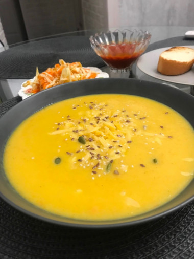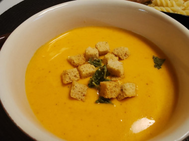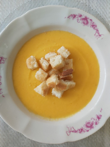 Очень вкусный суп получился по вашему рецепту! Насыщенный тыквенный вкус, лёгкая сладость от карамелизации лука и морковки. Приятная текстура после блендерения . Сухарики с травами добавляют приятную хрустинку и дополнительные специи во вкус. Мужу тоже очень понравился. Отличный вариант для разнообразия первых блюд, простой, быстрый и вкусный 👍🏻