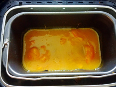 Варенье я варила из четырех крупных плодов хурмы (получился почти килограмм). Хурма у меня очень мягкая, сочная, кожица с неё снимается с лёгкостью. Косточек в ней не было. Варенье варила на режиме «Джем». На моей хлебопечке это заняло 1 час 5 минут. Вместо желатина я добавила агар-агар за 15 минут до окончания работы режима.