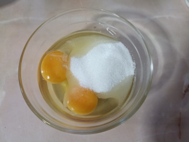 Яйца соедините с сахаром, добавьте соль для баланса вкуса. Взбейте всё венчиком до однородности. С этим количеством сахара крем получается умеренно сладким. Если любите более сладкий вкус, немного добавьте еще. Обязательно мойте яйца перед использованием, так как даже на кажущейся чистой скорлупе могут находиться вредные бактерии.