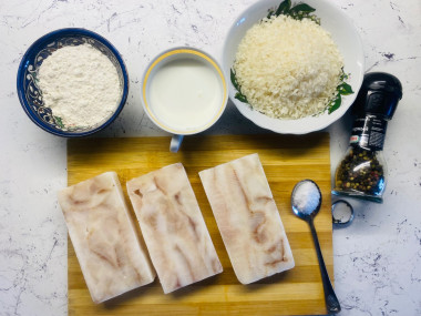 Как сделать треску с рисом в сливках? Подготовьте продукты. Рис возьмите длиннозёрный, пропаренный. Филе трески предварительно разморозьте. Сливки для соуса подойдут жирные, 20%. Если возьмете сливки меньшей жирности, то при приготовлении соуса нужно будет добавить немного муки для густоты. Базилик подойдёт сухой или свежий.