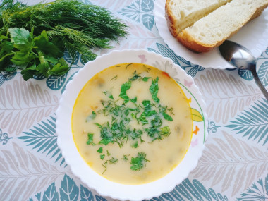 За это время сыр расплавится и суп будет готов к употреблению. Подавайте суп со свежей зеленью - зеленым луком, укропом, петрушкой. Насыпайте зелень в тарелку непосредственно перед подачей. Приятного аппетита!