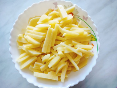Как сварить сливочный суп с грибами и плавленным сыром? Подготовьте необходимые ингредиенты. Картофель очистите, промойте и нарежьте средними кусочками.