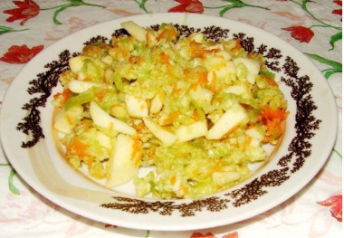 Все ингредиенты сложите в глубокую миску, добавьте соль по вкусу и заправьте майонезом. Майонез по желанию можно заменить другим соусом или лимонным соком и оливковым маслом, что сделает салат менее калорийным. Перемешайте салат и дайте ему пропитаться в холодильнике, оставив его на пару часов. Затем салат можно подать в этом салатнике или подать в порционных салатниках. Салат получается очень сочным, легким и вкусным.