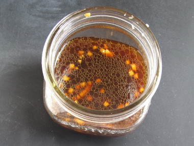 Добавьте растительное масло. Можно использовать любое рафинированное по вкусу. Снова хорошенько перемешайте все ингредиенты между собой. Для лучшей консистенции воспользуйтесь венчиком и немного взбейте маринад.