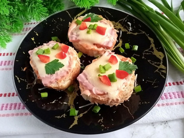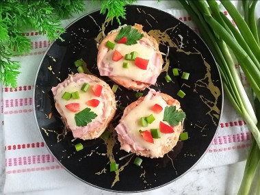 Запекать бутерброды в микроволновке лучше по отдельности. Если же будете запекать сразу два, то отрегулируйте время, проведенное в микроволновке, таким образом, чтобы сыр расплавился на всех кусочках одинаково. После того, как бутерброды запеклись, украсьте их при желании свежими веточками петрушки и подавайте к столу, пока они горячие. Приятного аппетита!