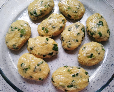 Слепите котлеты произвольной формы, выложите их на смазанный маслом противень. Полейте маслом сами котлетки сверху.