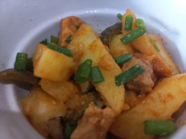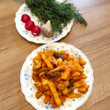 Азу вкусное с любым мясом. Вот вариант с курицей.