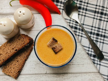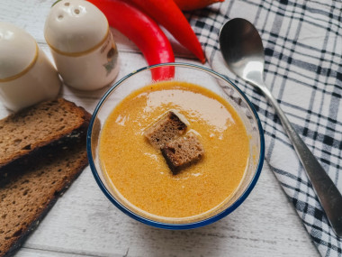 Вкусный и сытный обед в виде кремообразного супчика. Можно подавать с черным или белым хлебом, а можно с сухариками, которые как нельзя лучше подходят к супам такой консистенции. Если вы раньше такой не готовили, то очень советую попробовать, а если готовили, то повторить!