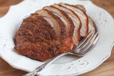 Очень удобный рецепт запеченной целиком свинины в духовке - очень легкий рецепт мяса, приправленного специями. Такое блюдо в приготовлении получается довольно простым, но в то же время неизменно вкусным, сочным и сытным. Его можно подать в качестве основного горячего с любым гарниром по желанию. Также такая свинина очень вкусна на следующий день, в холодном виде она напоминает мясной рулет!