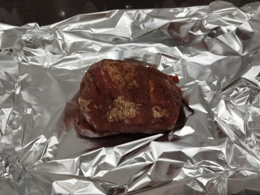 На следующий день мясо завернула в фольгу ( несколько слоев) и убрала запекаться при 180° на 1.5 часа.