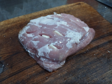 Единственное ,что изменила,это использовала свежий чеснок вместо сухого, который порезала пластинками и нашпиговала ими мясо.