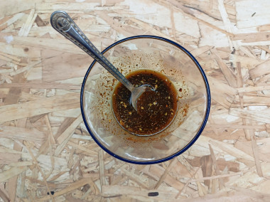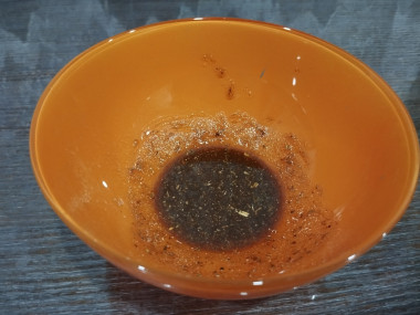 В мисочке смешайте паприку, острый перец, хмели-сунели, сухой чеснок, черный молотый перец и соль. Добавьте в специи оливковое масло и тщательно взбейте все вилкой. Оставьте смесь на 15-20 минут, чтобы маринад загустел. Острый перец по желанию можете не добавлять. Так как степень солености, сладости, горечи, остроты, кислоты, жгучести у каждого индивидуальная, всегда добавляйте специи, пряности и приправы, ориентируясь на свой вкус!