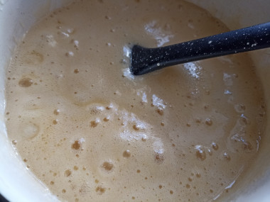 Добавьте молоко, муку и мягкое сливочное масло. Перемешайте все до однородности.