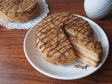 Кому интересно, смотрите еще один более простой вариант приготовления медовика со сметанным кремом.