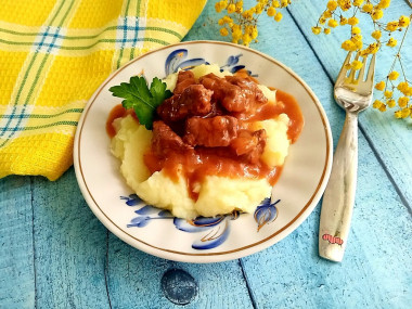 Гуляш из говядины с подливкой классический на сковороде