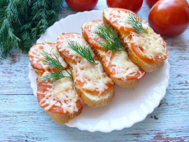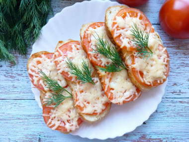 Приготовила на перекус бутерброды с помидором и сыром в духовке по этому рецепту. Рецепт из разряда просто, быстро, вкусно! Супер-пупер! Для бутербродов я взяла старый багет, нарезала его, натёрла ломтиком чеснока, смазала сливочным маслом. Выложила кружочки помидора и сыр. Сыр я взяла российский. Запекала в своей духовке 10 минут. Украсила веточками укропа и подавала горячими с чаем. Бутерброды получились очень вкусные! Танцую Хрустящий хлеб, покрытый золотистой корочкой от запекания, сочные помидоры, которые так и манят своей мясистой сладостью, и нежный, расплавленный сыр - идеальное трио для вкусового наслаждения. Спасибо автору за рецепт! Букетик