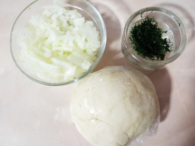 Пока тесто отдыхает, подготовьте начинку. Лук очистите и нарежьте по возможности как можно мельче.