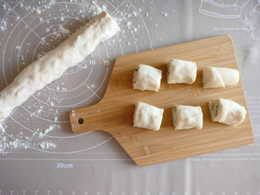 Нарежьте получившийся рулет на шайбочки шириной примерно 4см.