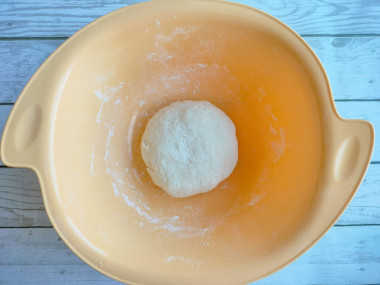 Соберите тесто в шар, положите его в миску, накройте ее полотенцем. Оставьте тесто постоять так при комнатной температуре 20-30 минут. Мука окончательно впитает всю жидкость и в ней разовьется клейковина, которая влияет на эластичность.